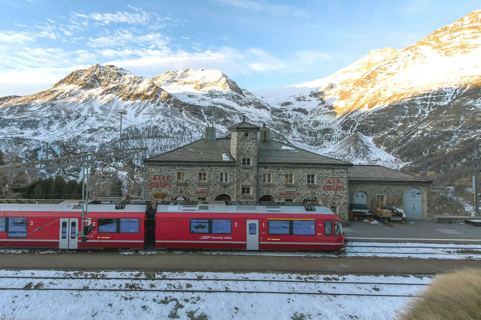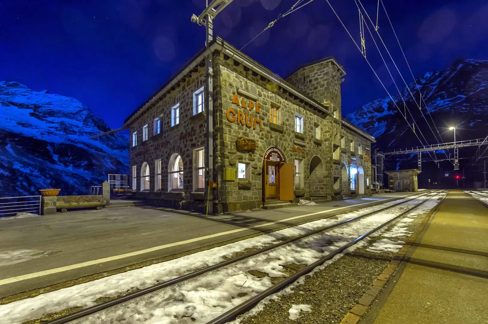 Alp Grüm rappresenta un punto di riferimento non solo come ristorante ma anche come tappa obbligata per escursionisti e sciatori che attraversano la regione. Qui, si possono trovare ristoro e ospitalità in un ambiente dominato da paesaggi naturali imponenti e una tranquilla solitudine, tipica di questo rifugio d'alta montagna.
