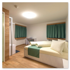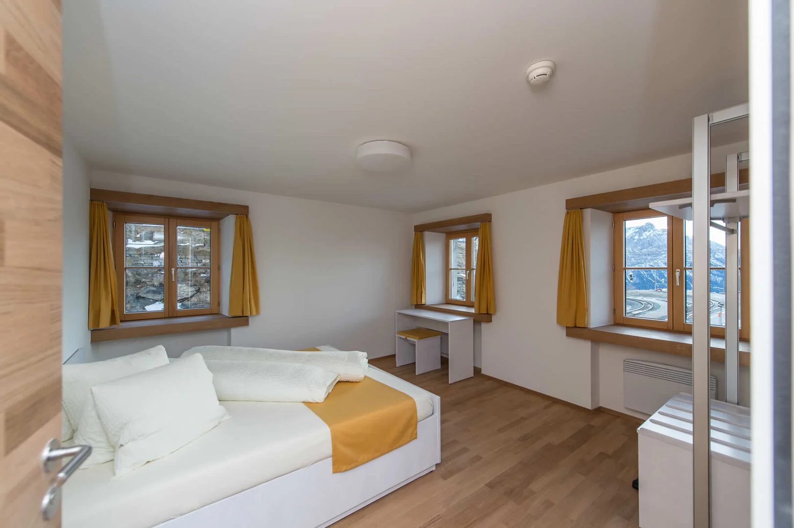 The hotel has 10 rooms, each cosily furnished with wooden furniture and warm fabrics to create a comfortable, inviting atmosphere. The rooms are named after local mountains—Canciano, Curnasel, Sassalmasone, Varuna, Palü, Cambrena, Bernina, Sena, Sassalbo, and Teo. Each room is equipped with its own shower and WC and can be configured as single, double, or triple rooms, with an option for an additional cosy bed. Many rooms offer panoramic views of the Alps, allowing guests to take in the breathtaking scenery right from their windows.