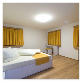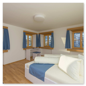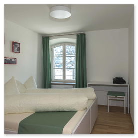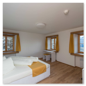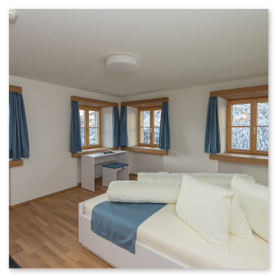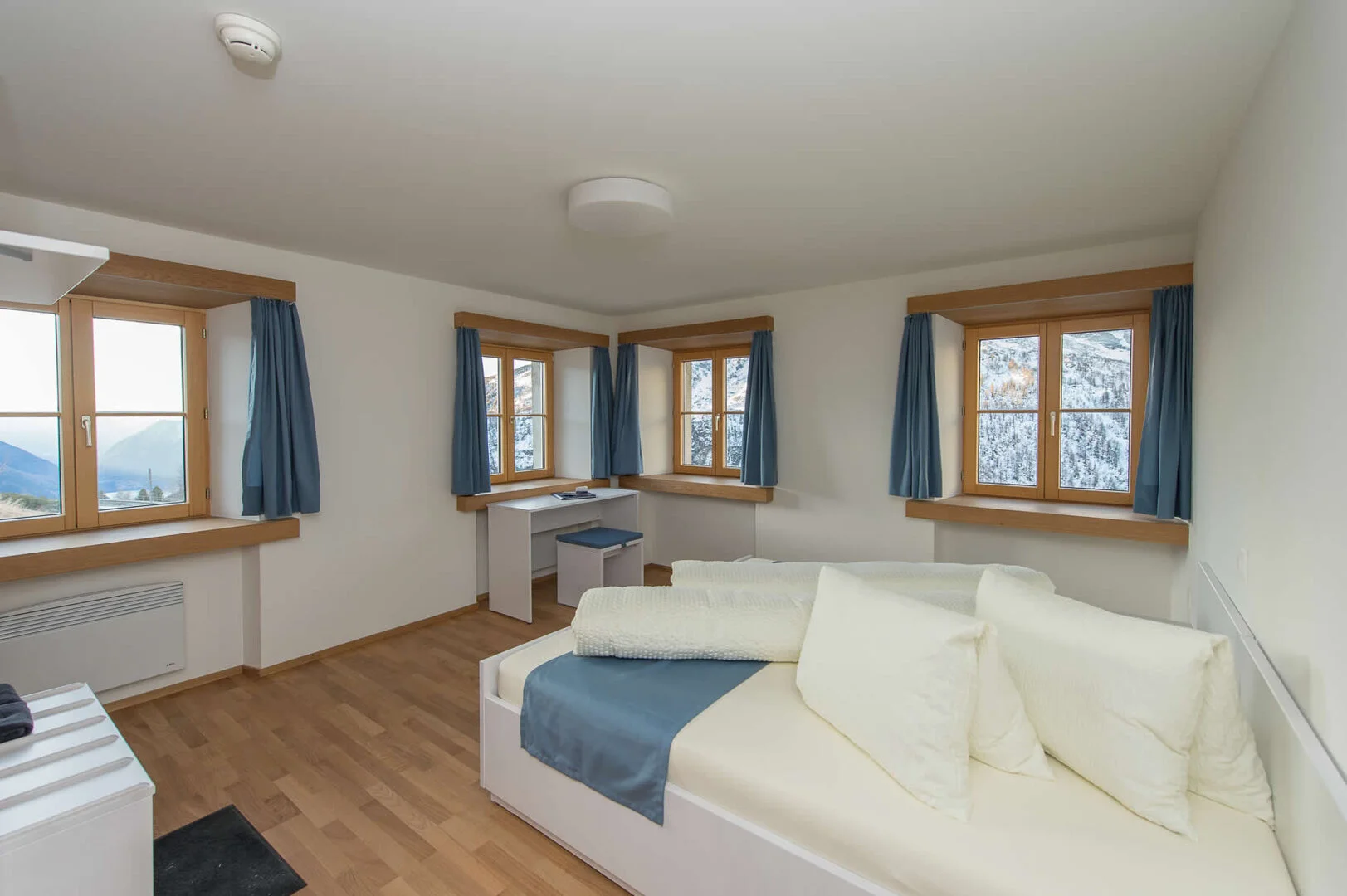Le 10 camere dell'Hotel sono arredate per fornire comfort e calore, spesso caratterizzate da mobili in legno e tessuti avvolgenti che contribuiscono a creare un'atmosfera accogliente. I nomi delle camere, Canciano, Curnasel, Sassalmasone, Varuna, Palü, Cambrena, Bernina, Sena, Sassalbo e Teo, sono ispirati alle montagne nelle vicinanze. Ogni camera, equipaggiata con doccia e WC, è disponibile in configurazioni singola, doppia o tripla, con la possibilità di aggiungere un letto supplementare. Molte camere offrono anche una vista panoramica sulle Alpi, permettendo agli ospiti di ammirare il paesaggio direttamente dalla loro finestra.